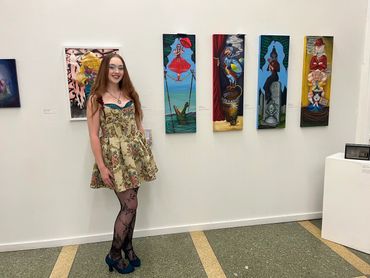 Lyba Leona is a San Francisco born, award winning artist, currently based out of New Orleans, Louisiana. A fine arts major, with a painting concentration, she has been gaining notoriety on the Gulf Coast art scene. In March of 2025, five of her works were selected amongst hundreds to be a part of the juried student exhibition at SELU. In June of 2025, Lyba Leona's autobiographical piece "Long, Tall Sally," placed 2nd in celebrated New Orleans artist Terrance Osbourne's juried competition "Fragments of Imagination." Several of her pieces have been featured at White Linen Night, and in September, a large portion of her collection was picked up by the French Quarter Boxcar Gallery on Royal Street. Most of this collection sold within 8 weeks of it's placement. Her illustrations have been internationally published in Kinetic medical journal, and the British podcast "Grimm Reading." Lyba Leona has also worked with various musicians on commissioned album and poster art.